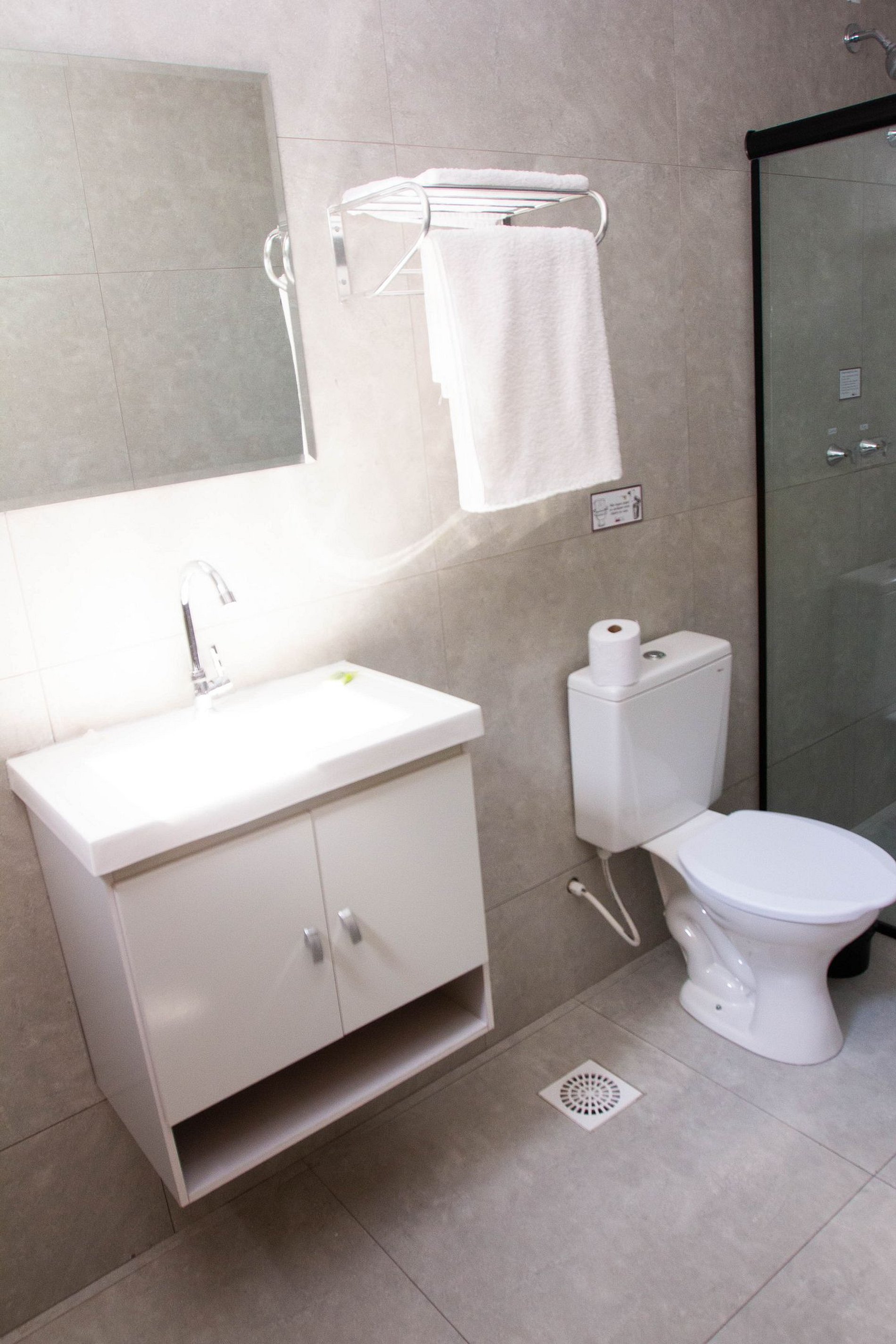 O acesso aos quartos é por meio de fechadura eletrônica, a senha é disponibilizada no momento do check-in.