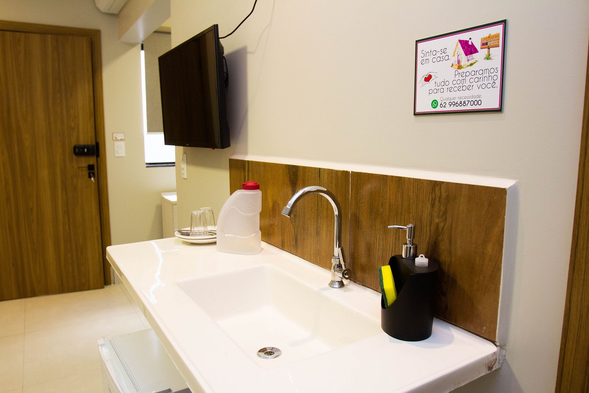 Possuímos uma copa compartilhada equipada caso o hóspede deseje preparar suas refeições (micro-ondas, air-fryer, sanduicheira, cafeteira, purificador de água, etc), e existem supermercados, restaurantes e bares nas proximidades da acomodação.