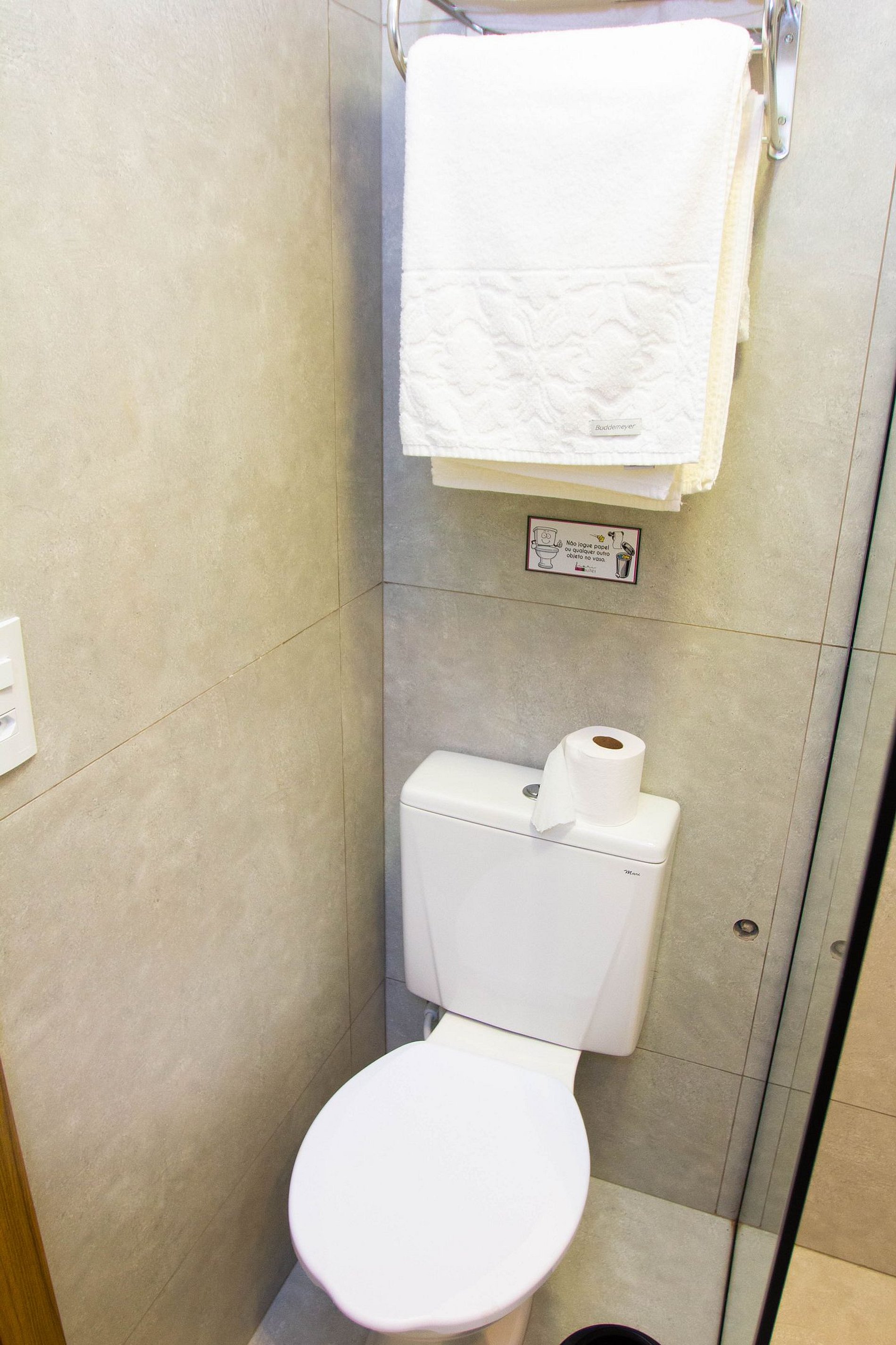 O acesso aos quartos é por meio de fechadura eletrônica, a senha é desponibilizada no momento do check-in.
