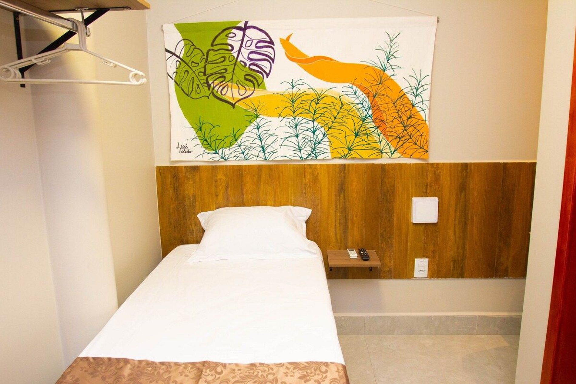 A suíte conta com uma cama de solteiro, frigobar, ar condicionado, smartTV. O espaço é monitorado 24h por câmeras de segurança (áreas comuns) e Wi-fi.