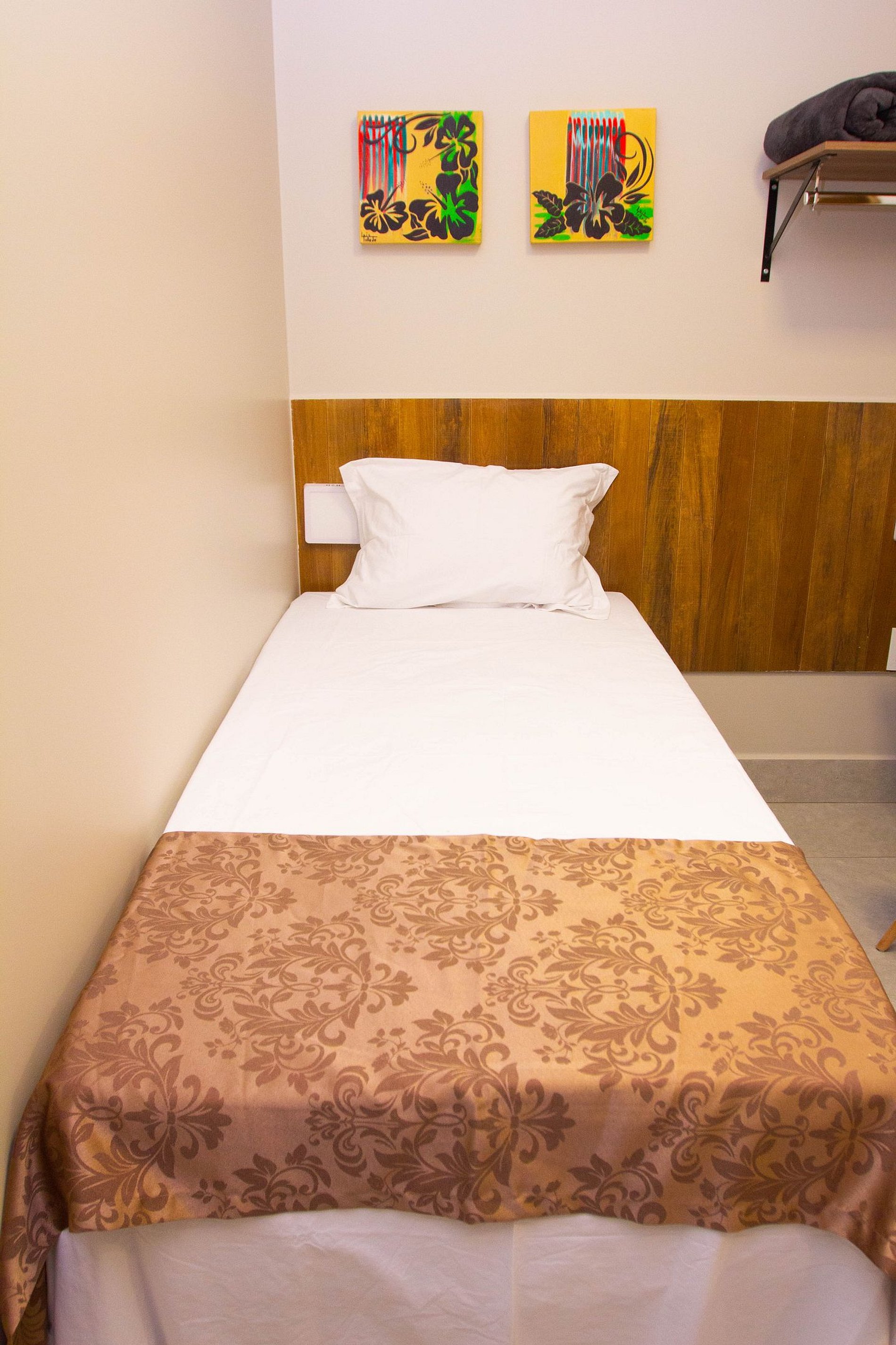 A suíte conta com uma cama de solteiro, frigobar, ar condicionado, smartTV. Disponibilizamos sabonetes, roupas de cama e banho por cortesia. O espaço é monitorado 24h por câmeras de segurança (áreas comuns) e Wi-fi.