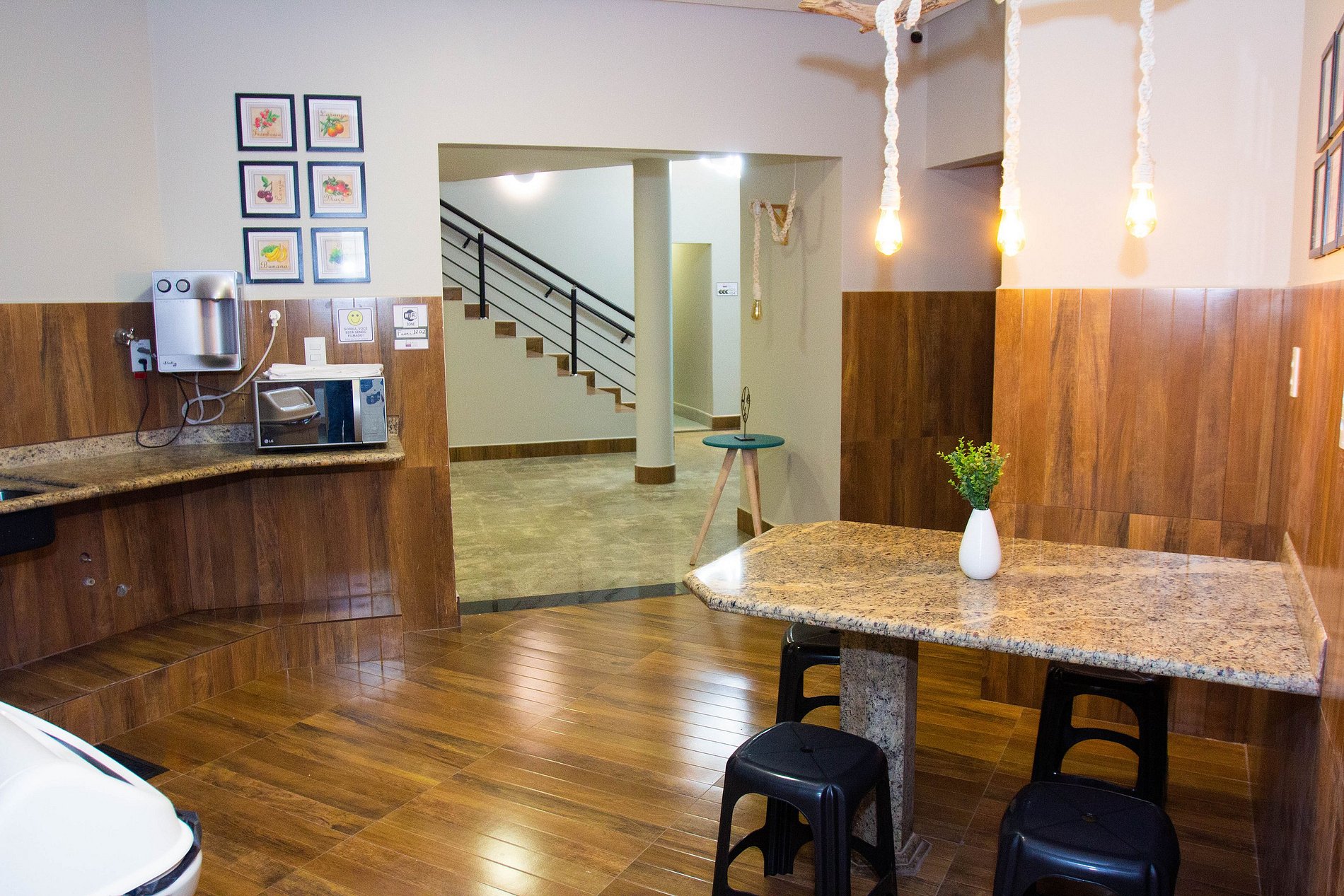 Possuímos uma copa compartilhada equipada caso o hóspede deseje preparar suas refeições (micro-ondas, air-fryer, sanduicheira, cafeteira, purificador de água, etc), e existem supermercados, restaurantes e bares nas proximidades da acomodação.