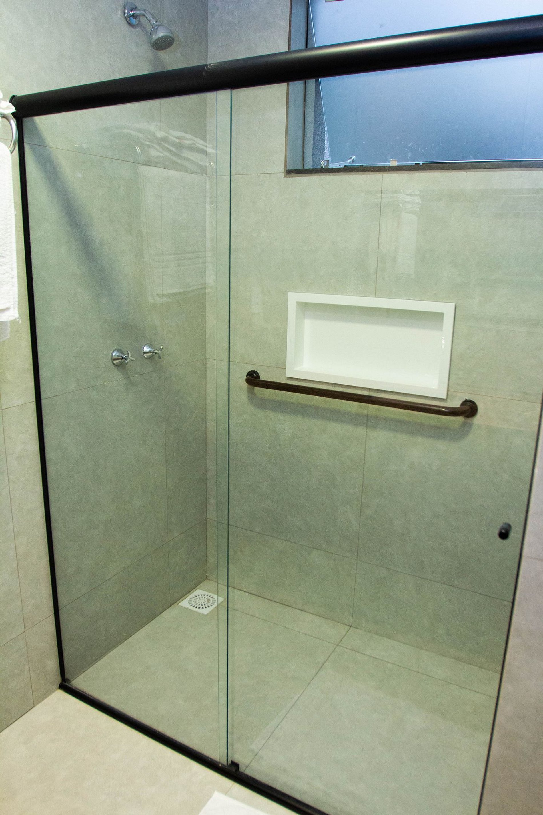 A suíte conta com uma cama queen size, frigobar, ar condicionado, smartTV. Disponibilizamos sabonetes, roupas de cama e banho por cortesia. O espaço é monitorado 24h por câmeras de segurança (áreas comuns) e Wi-fi.