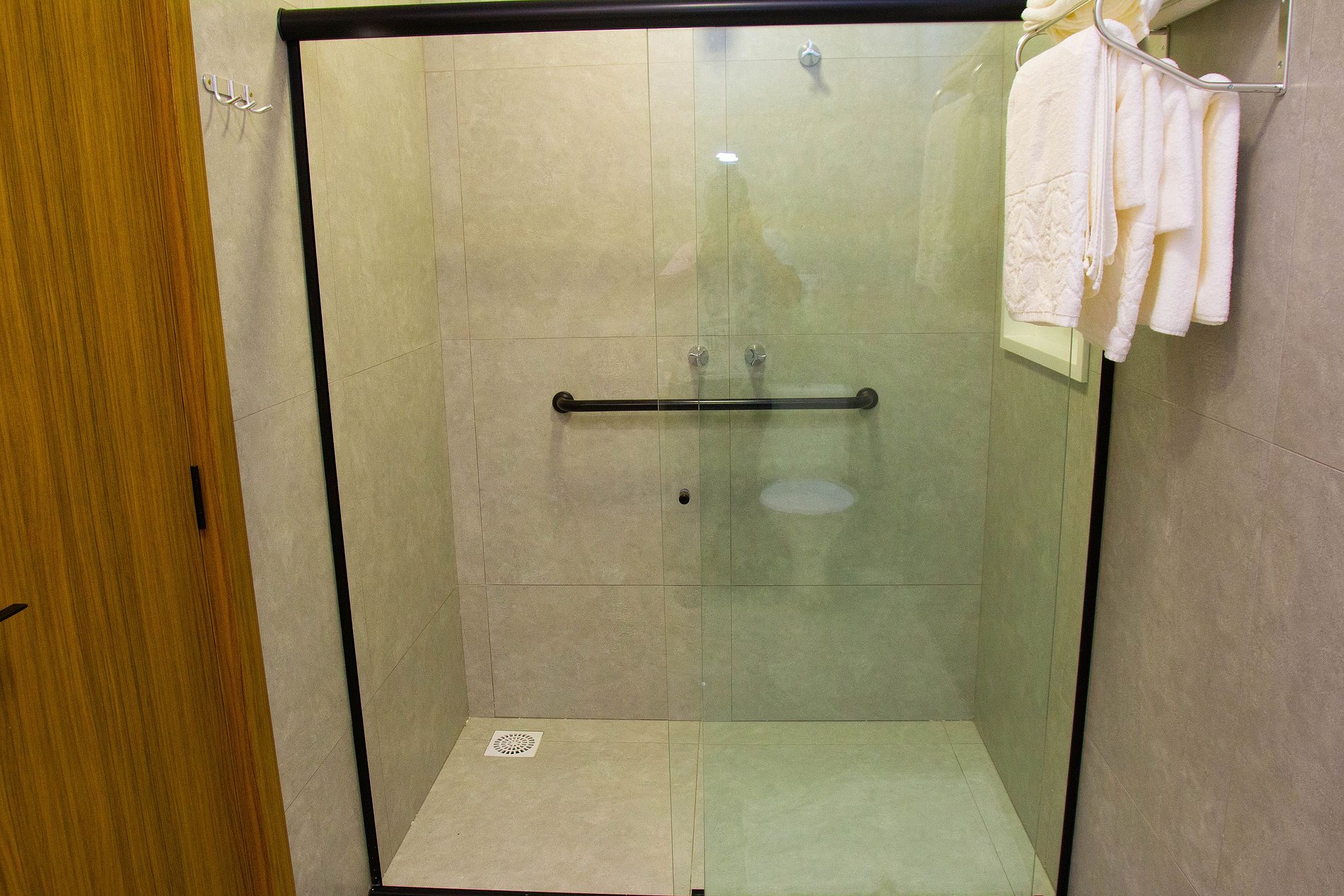 O acesso aos quartos é por meio de fechadura eletrônica, a senha é disponibilizada no momento do check-in.