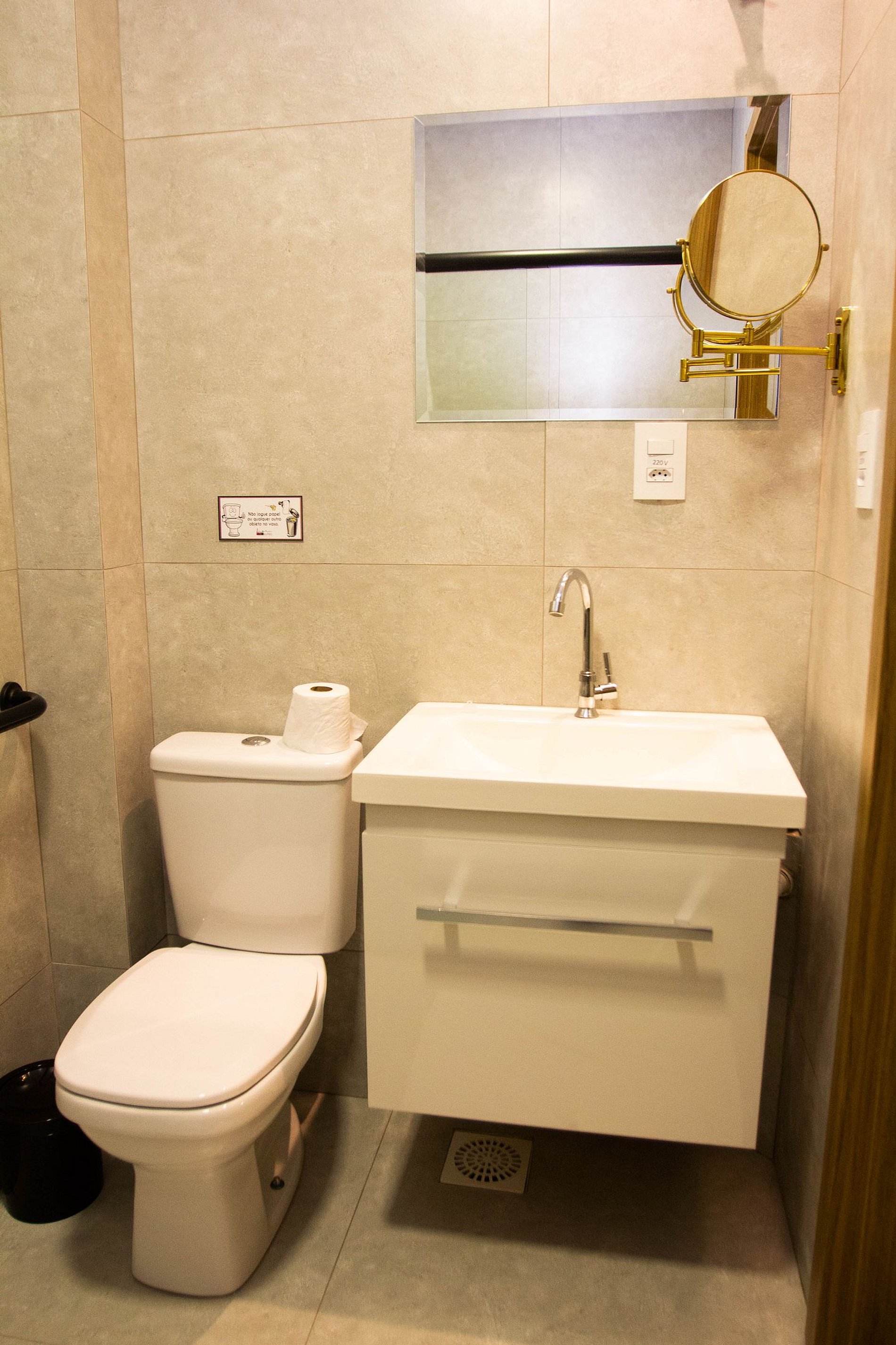 A suíte conta com uma cama queen size, duas camas de solteiro, frigobar, ar condicionado, smartTV. Disponibilizamos sabonetes, roupas de cama e banho por cortesia. Possuímos uma área compartilhada com micro-ondas, purificador de água, cafeteira, ferro de passar e secador de cabelo. O espaço é monitorado 24h por câmeras de segurança (áreas comuns) e Wi-fi. O acesso aos quartos é por meio de fechadura eletrônica, a senha é disponibilizada no momento do check-in.