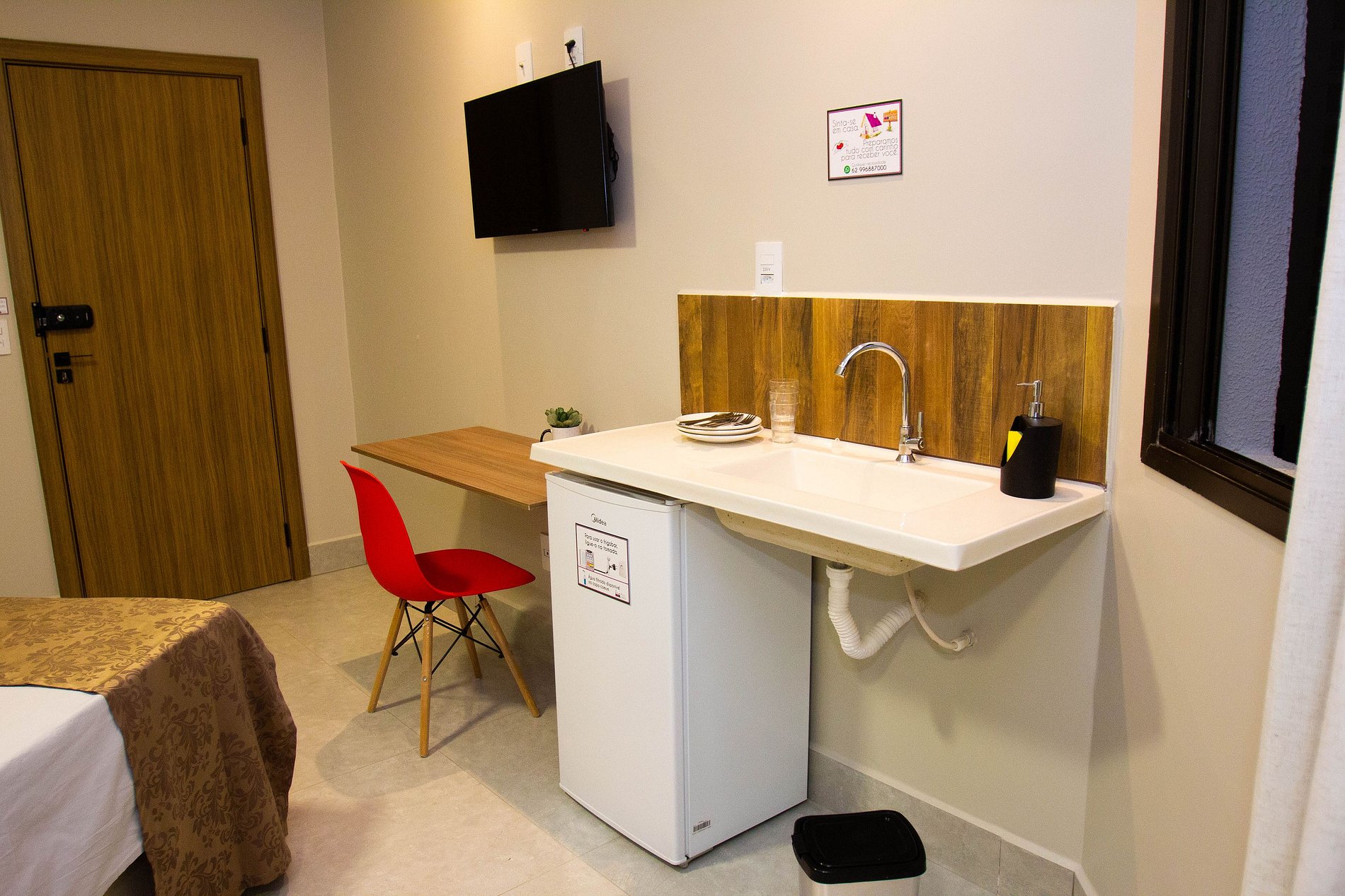 Possuímos uma copa compartilhada equipada caso o hóspede deseje preparar sua refeição (micro-ondas, air-fryer, sanduicheira, cafeteira, purificador de água, etc), e existem supermercados, restaurantes e bares nas proximidades da acomodação.