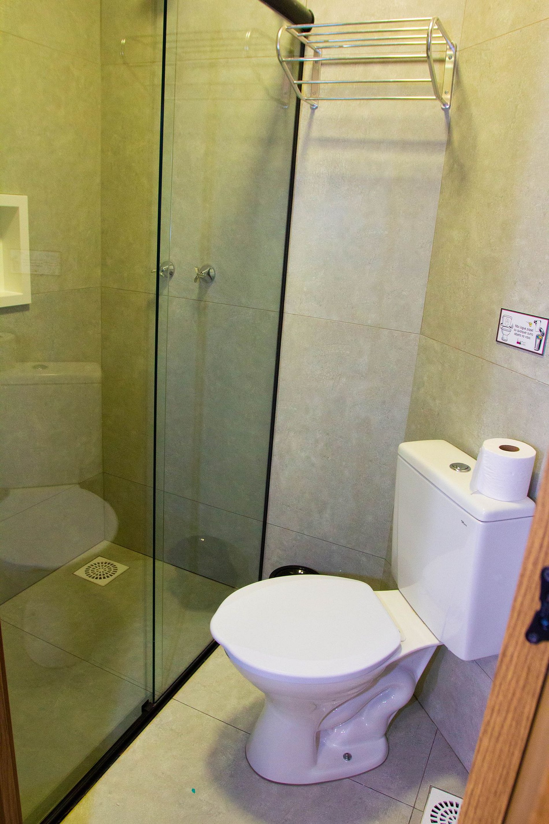 O acesso aos quartos é por meio de fechadura eletrônica, a senha é disponibilizada no momento do check-in.