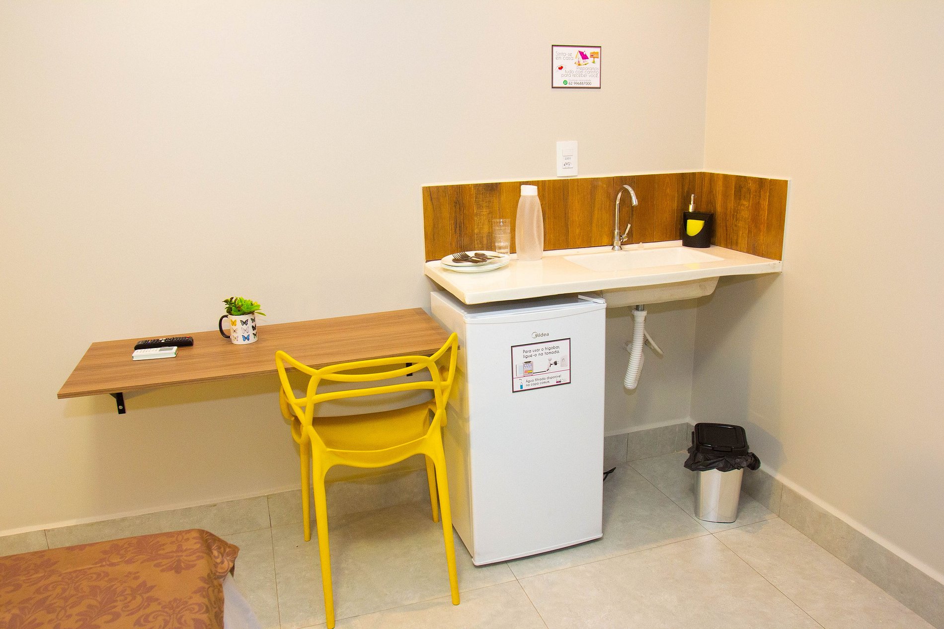 Possuímos uma copa compartilhada equipada caso o hóspede deseje preparar sua refeição (micro-ondas, air-fryer, sanduicheira, cafeteira, purificador de água, etc), e existem supermercados, restaurantes e bares nas proximidades da acomodação.