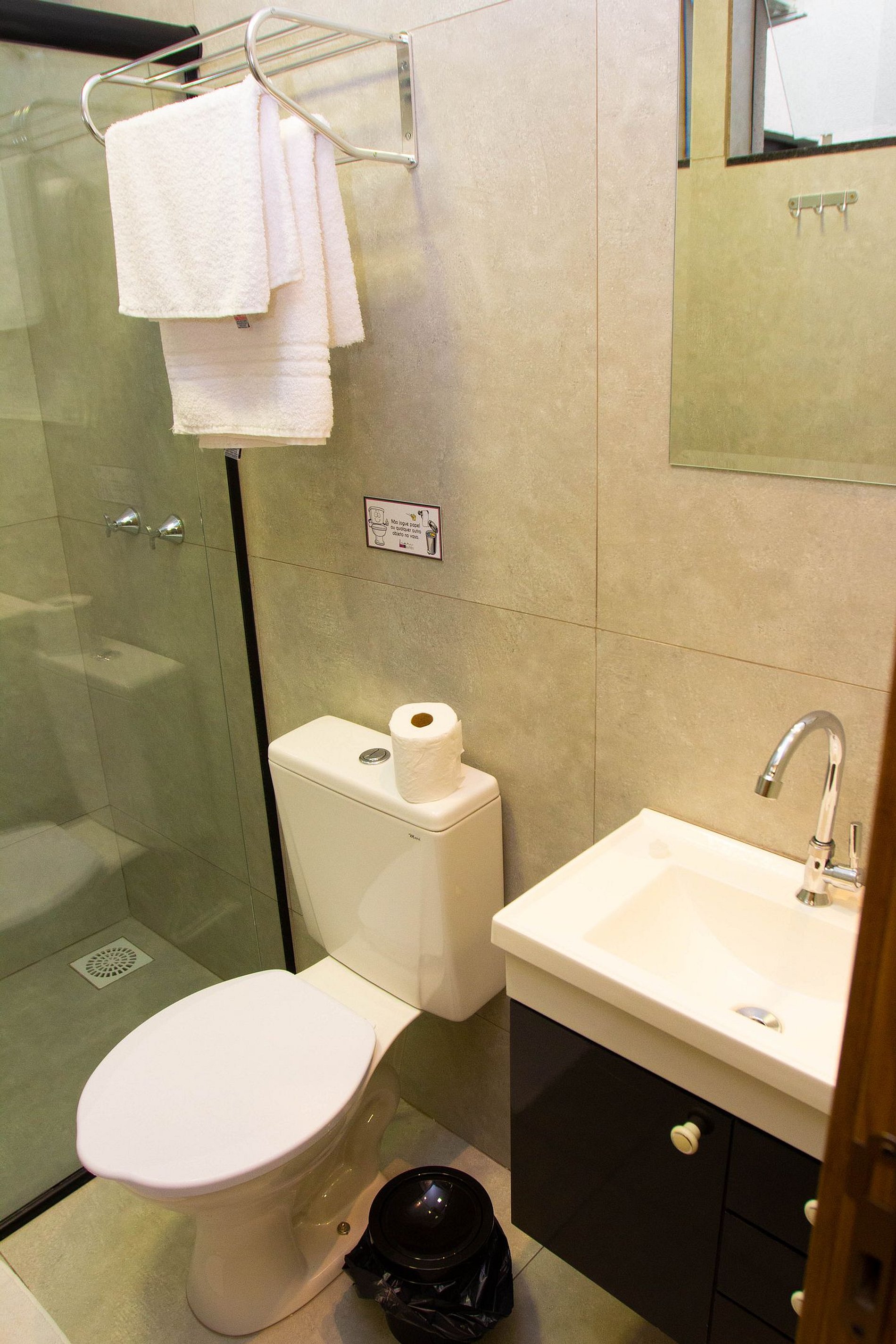 O acesso aos quartos é por meio de fechadura eletrônica, a senha é disponibilizada no momento do check-in.