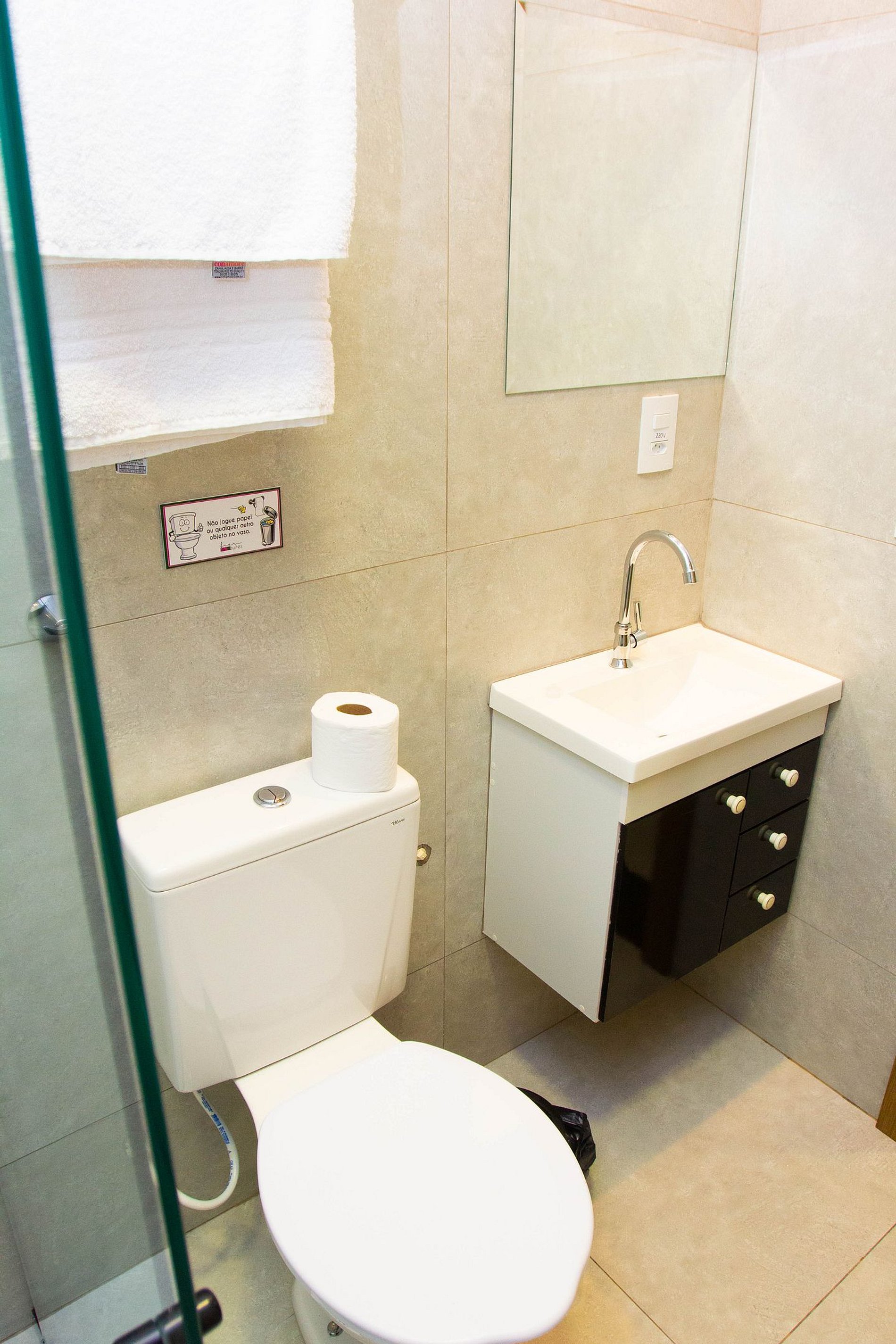 A suíte conta com uma cama de solteiro, frigobar, ar condicionado, smartTV. Disponibilizamos sabonetes, roupas de cama e banho por cortesia. O espaço é monitorado 24h por câmeras de segurança (áreas comuns) e Wi-fi.